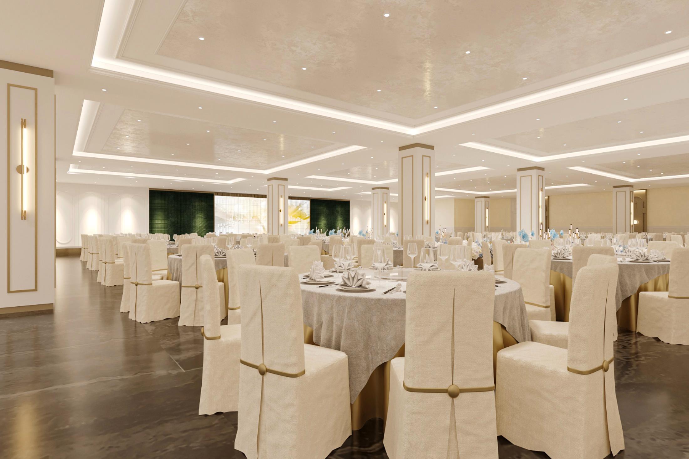 在这里,连时光都愿为你们停留,高耸的水晶穹顶倾泻而下万千星光,纯白玫瑰与鎏金装饰在空气中交织出梦幻芬芳。每一步红毯都通向幸福的彼岸,每一处细节都诉说着永恒的承诺。这不是场地,而是你们爱情故事的舞台的......